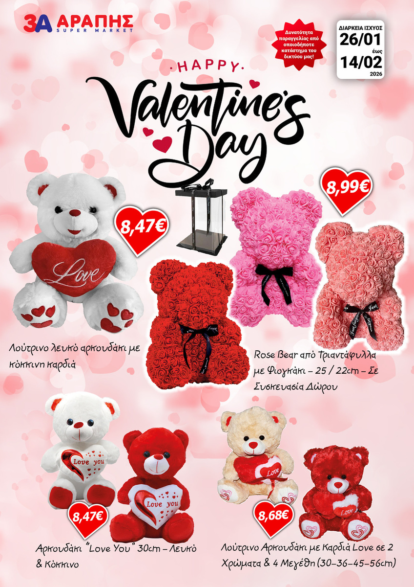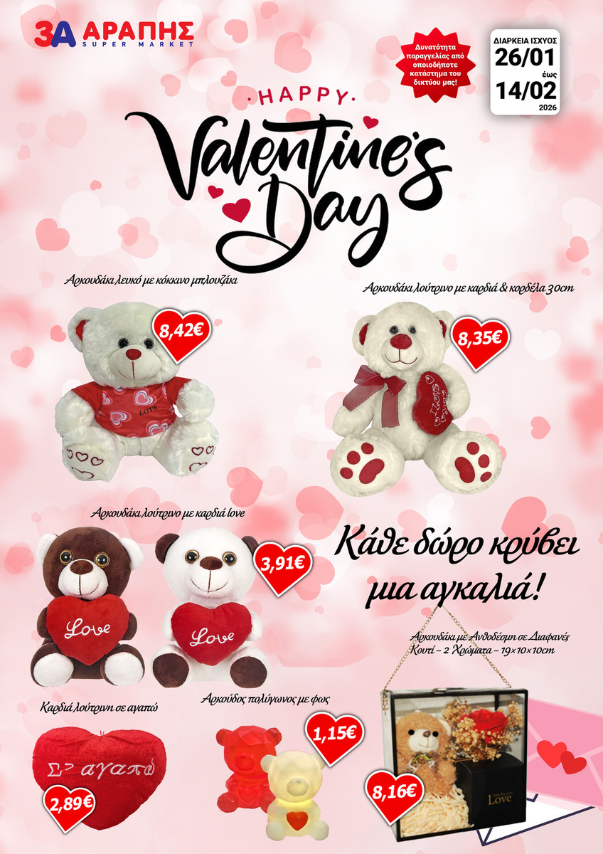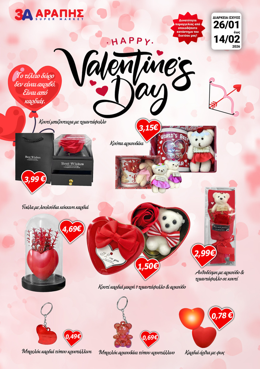 Ανακάλυψε τη συλλογή μας για την Αγίου Βαλεντίνου και διάλεξε δώρα που μιλάνε κατευθείαν στην καρδιά. Αρκουδάκια, τριαντάφυλλα, κούπες και διακοσμητικά που δεν είναι απλά αντικείμενα – είναι τρόποι να πεις «σ’ αγαπώ», «σε σκέφτομαι», «είσαι σημαντικός/ή για μένα».